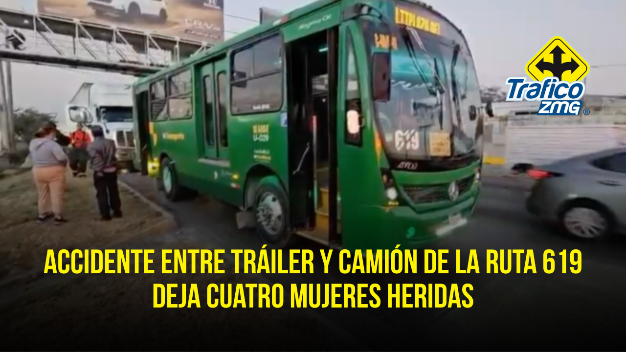 Esta mañana se registró un choque entre un tráiler y un camión de transporte público sobre Periférico, a la altura de la colonia La Llave. Cuatro mujeres resultaron lesionadas#TráficoZMGPeriodismoCiudadano pic.twitter.com/m5QsBLu4oe