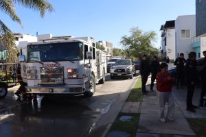 Al llegar, se percataron de que el fuego se originaba en un cuarto ubicado en el segundo nivel del domicilio, donde un buró con altar se encontraba ardiendo. El fuego fue controlado mediante el uso de agua a presión, evitando que se extendiera a otras áreas de la vivienda.