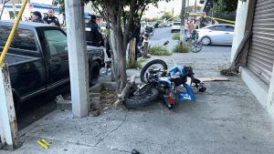 En la zona quedaron tiradas las dos motocicletas una sobre el asfalto y otra en la banqueta, ambas con visibles daños.