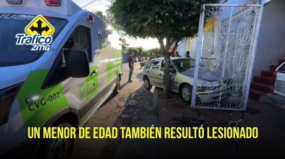 La tarde de este miércoles un aparatoso accidente vehicular tuvo lugar sobre el cruce de las calles Canal y Presa Laurel, en la colonia San Joaquín de Guadalajara. Todo se propició cuando la conductora de un automóvil, Pointer, perdió el control del volante y terminó sobre la banqueta, impactando contra un árbol y posteriormente el cancel de una vivienda.