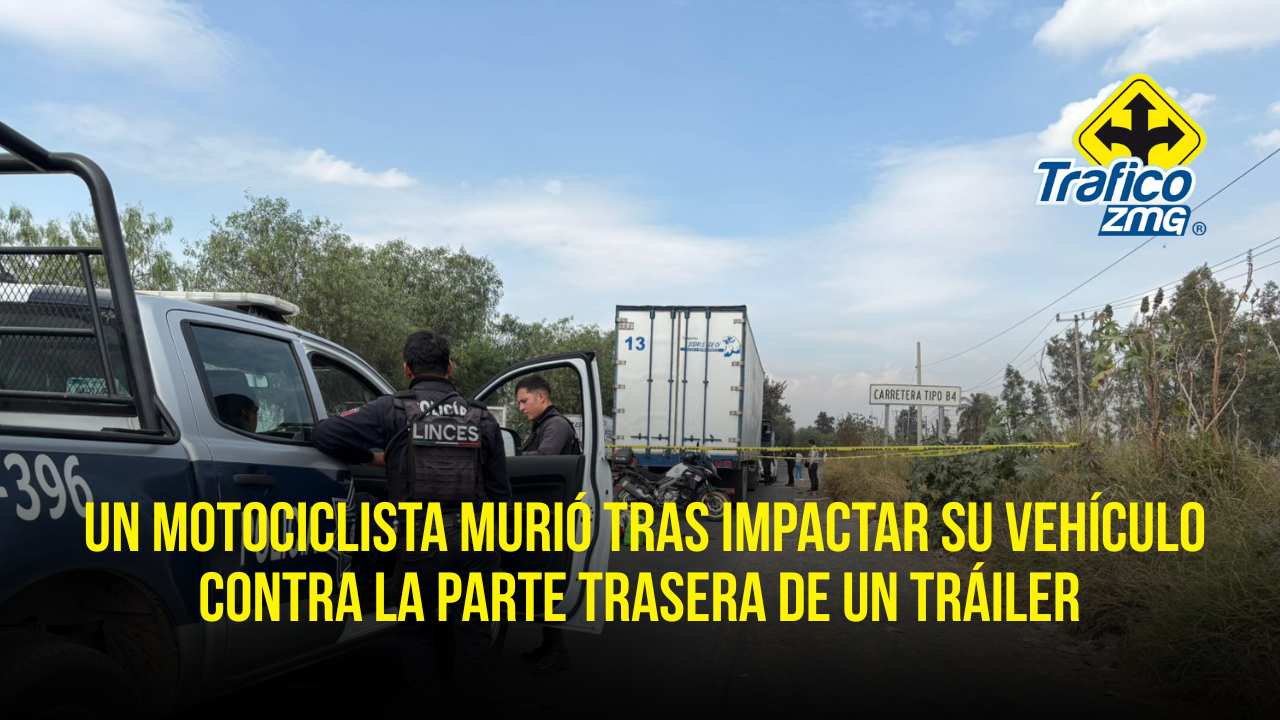 Un motociclista murió la tarde de este lunes luego de impactarse contra la parte trasera de un tráiler sobre la carretera a Chapala, a la altura del Walmart Cedis, en dirección a Guadalajara. El accidente ocurrió en el municipio de El Salto.