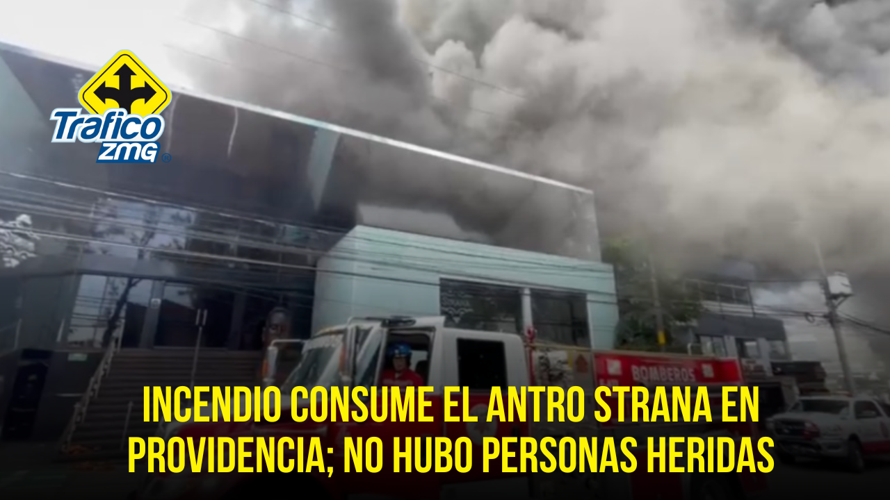 La mañana de este miércoles, un fuerte incendio se registró al interior del antro Strana, ubicado sobre la avenida Pablo Neruda, entre Rubén Darío y Ontario, en la colonia Providencia de Guadalajara. Una densa columna de humo alarmó a vecinos y comerciantes de la zona, quienes realizaron múltiples reportes al 911.
