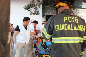Tras ser estabilizado por bomberos de Guadalajara, el herido fue trasladado por elementos de SAMU Jalisco hasta un puesto de socorros para su atención.
