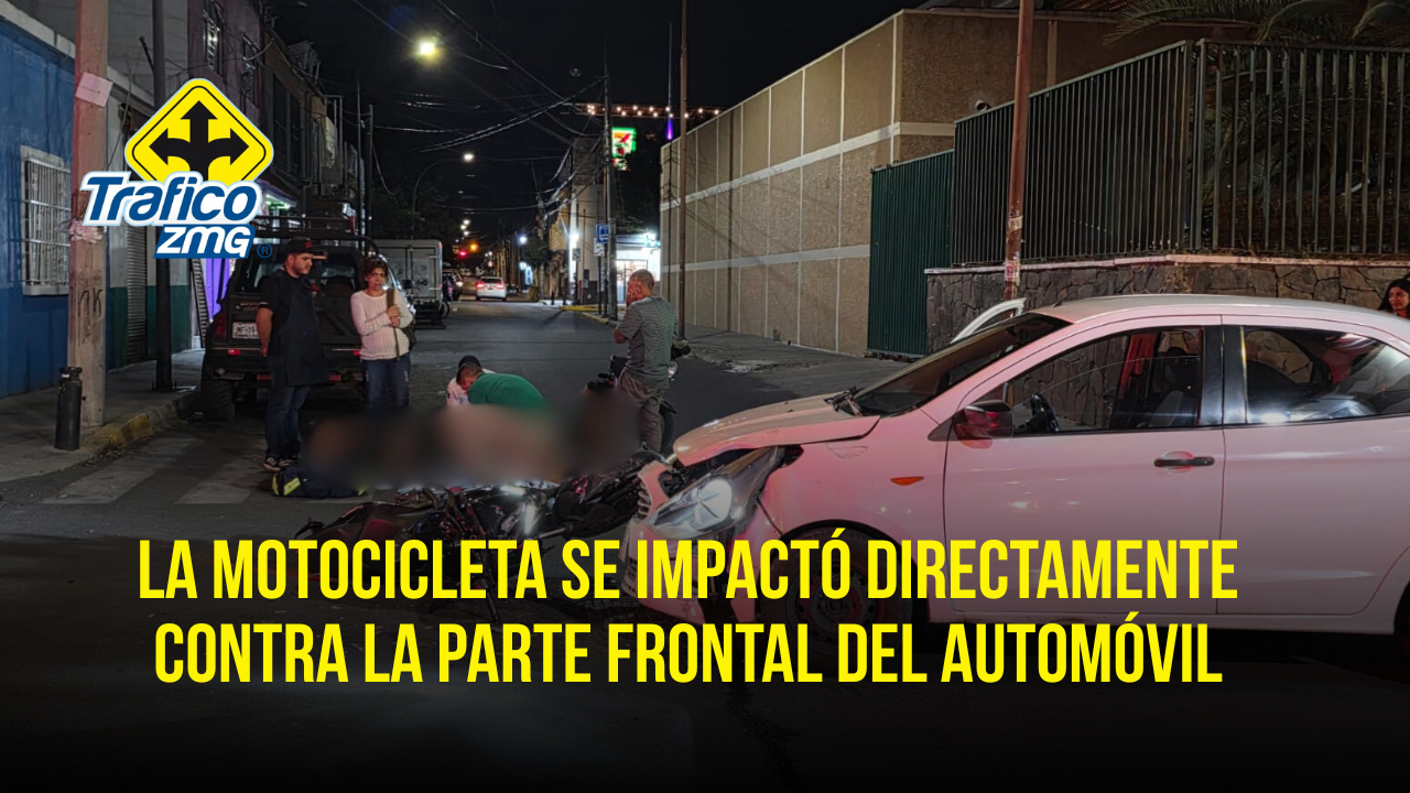 Dos jóvenes de aproximadamente 25 años de edad resultaron lesionados tras impactar la motocicleta en la que viajaban contra un vehículo sedán en el cruce de las calles General Coronado y Jesús García de la colonia Santa Villaseñor, en Guadalajara.