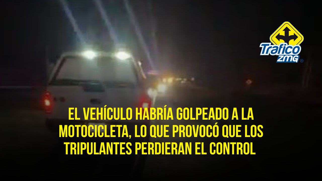 De acuerdo con información preliminar, el vehículo habría golpeado a la motocicleta, lo que provocó que los tripulantes perdieran el control y terminaran proyectándose contra otro automotor.