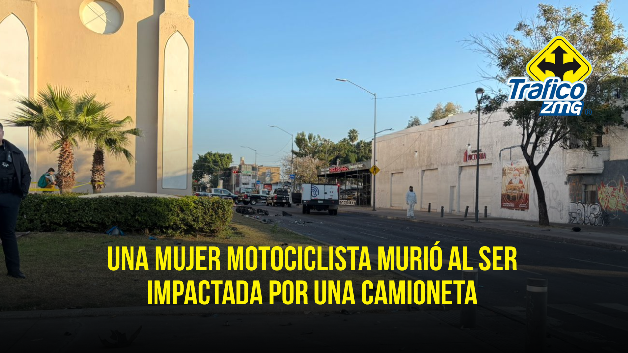 Una mujer motociclista perdió la vida la mañana de este miércoles luego de ser impactada por una camioneta sobre la calzada Federalismo, entre las calles Garibaldi y Joaquín Angulo, justo frente al Templo del Refugio, en la Zona Centro de Guadalajara.