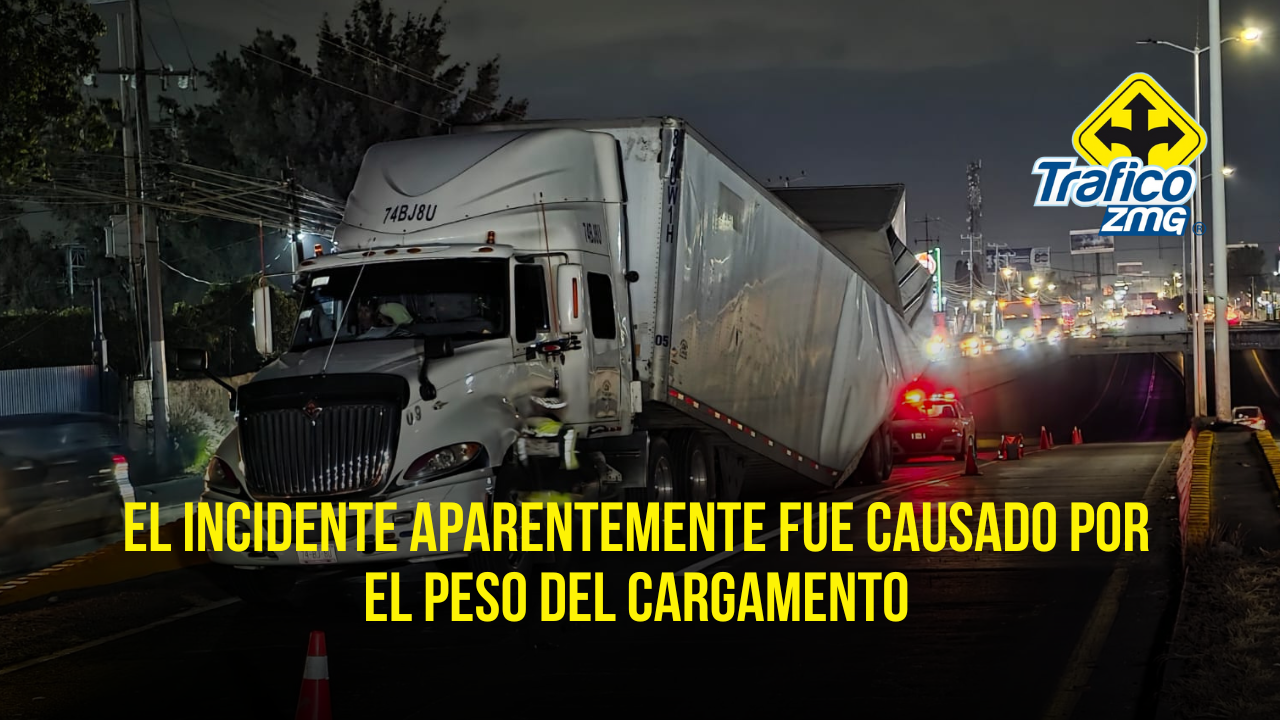 Un incidente vial se registró en el paso a desnivel de la carretera Nogales, ubicado a la altura de Rancho Contento, en el sentido que conduce de Guadalajara hacia Tequila, luego de que a un tráiler se le partiera la caja a la mitad al momento de salir del túnel. El vehículo de carga transportaba toneladas de costales de papa, los cuales quedaron varados dentro de la estructura, provocando el cierre total del túnel.