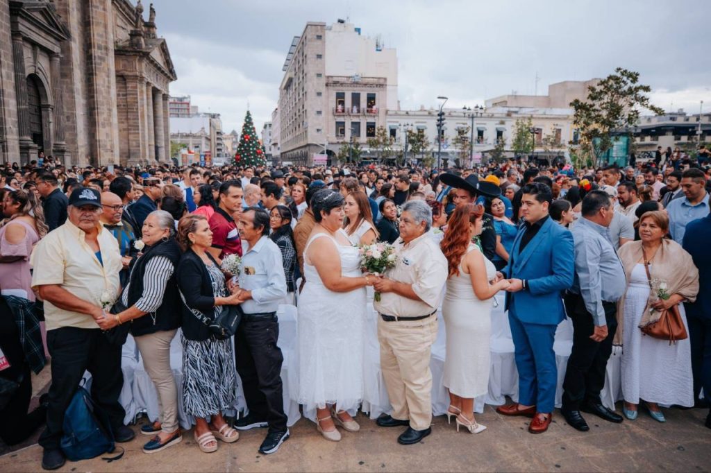 Este sábado, mil 726 parejas contrajeron matrimonio durante la ceremonia anual de matrimonios colectivos, realizada en la Plaza Guadalajara, en el Centro Histórico.