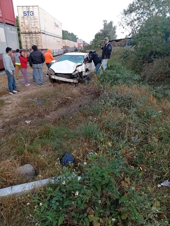 Esta mañana, unidades de emergencia atendieron un choque entre un tren y un vehículo compacto en el cruce de Avelino Ruiz y Jesús García, en la colonia Francisco Villa