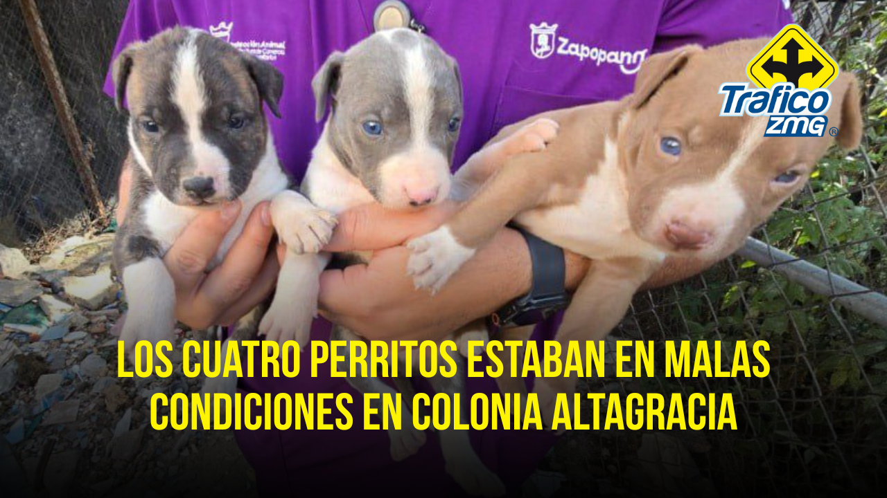 En el sitio encontraron a una perrita adulta y tres cachorros de cerca de mes y medio, todos de raza pitbull. Los cuatro fueron trasladados a la Unidad de Protección Animal de Zapopan, donde recibirán atención veterinaria y los cuidados necesarios.