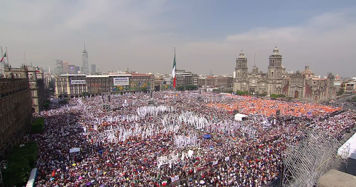 Desde la noche previa, decenas de simpatizantes acamparon en la plaza principal para asegurar un lugar en el evento, lo que fue difundido mediante videos en redes sociales. De acuerdo con la secretaria de Gobernación, Rosa Icela Rodríguez, grupos provenientes de Tamaulipas, Chiapas, Guanajuato y San Luis Potosí viajaron a la capital para sumarse a la celebración, señalando que la llegada de contingentes continuaba durante la mañana.