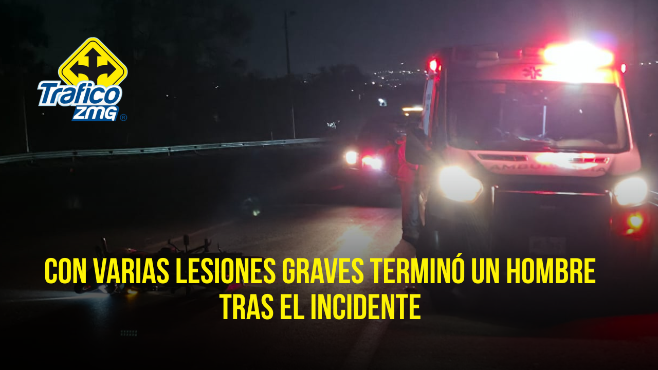 Un motociclista de aproximadamente 40 años de edad resultó con lesiones graves esta madrugada luego de impactarse contra la parte trasera de un vehículo sedán sobre la carretera a Chapala, con dirección al ingreso de la ciudad, en su cruce próximo con la calle Lomas Verdes, de la colonia El Tapatío de Tlaquepaque.