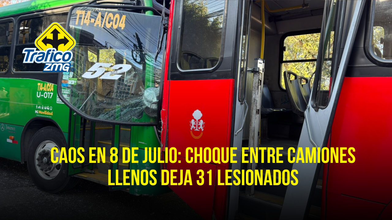 Un choque entre dos unidades del transporte público se registró en el cruce de las avenidas 8 de Julio y Cayetano Esteva, en la colonia Polanco en Guadalajara, donde se vieron involucrados un camión de la ruta 52 y otro de la ruta 50 Arroyo Hondo.