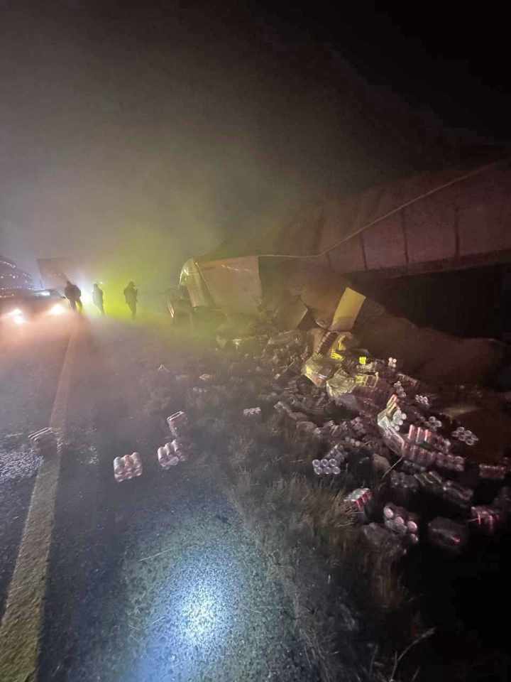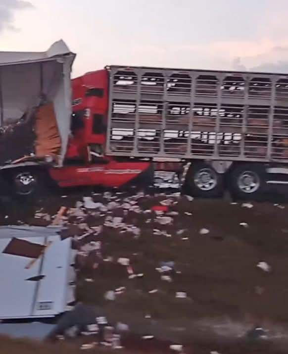 De acuerdo con el saldo preliminar, no se reportaron personas lesionadas, únicamente daños materiales. Uno de los tráileres involucrados, que transportaba bebidas, impactó a un automóvil y ambas unidades cayeron a la cuneta central, donde el contenedor del vehículo pesado terminó destrozado.