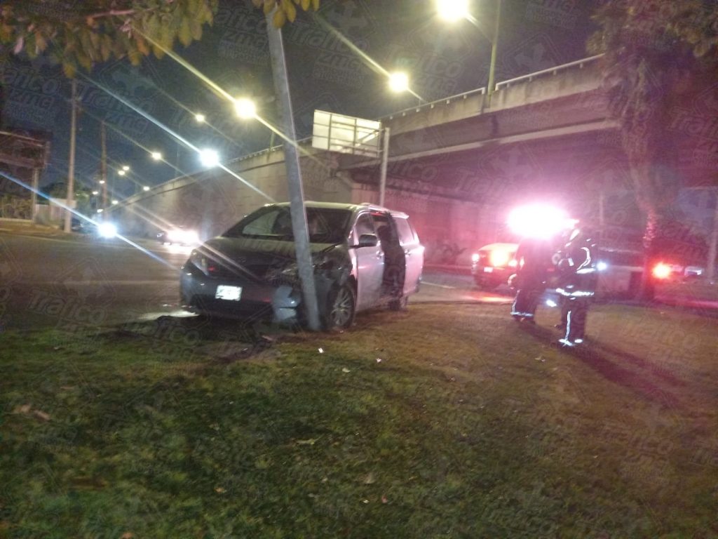De acuerdo con versiones de testigos, el conductor circulaba a exceso de velocidad, brincó el camellón central y terminó impactándose contra el semáforo, para posteriormente abandonar el vehículo en el lugar.