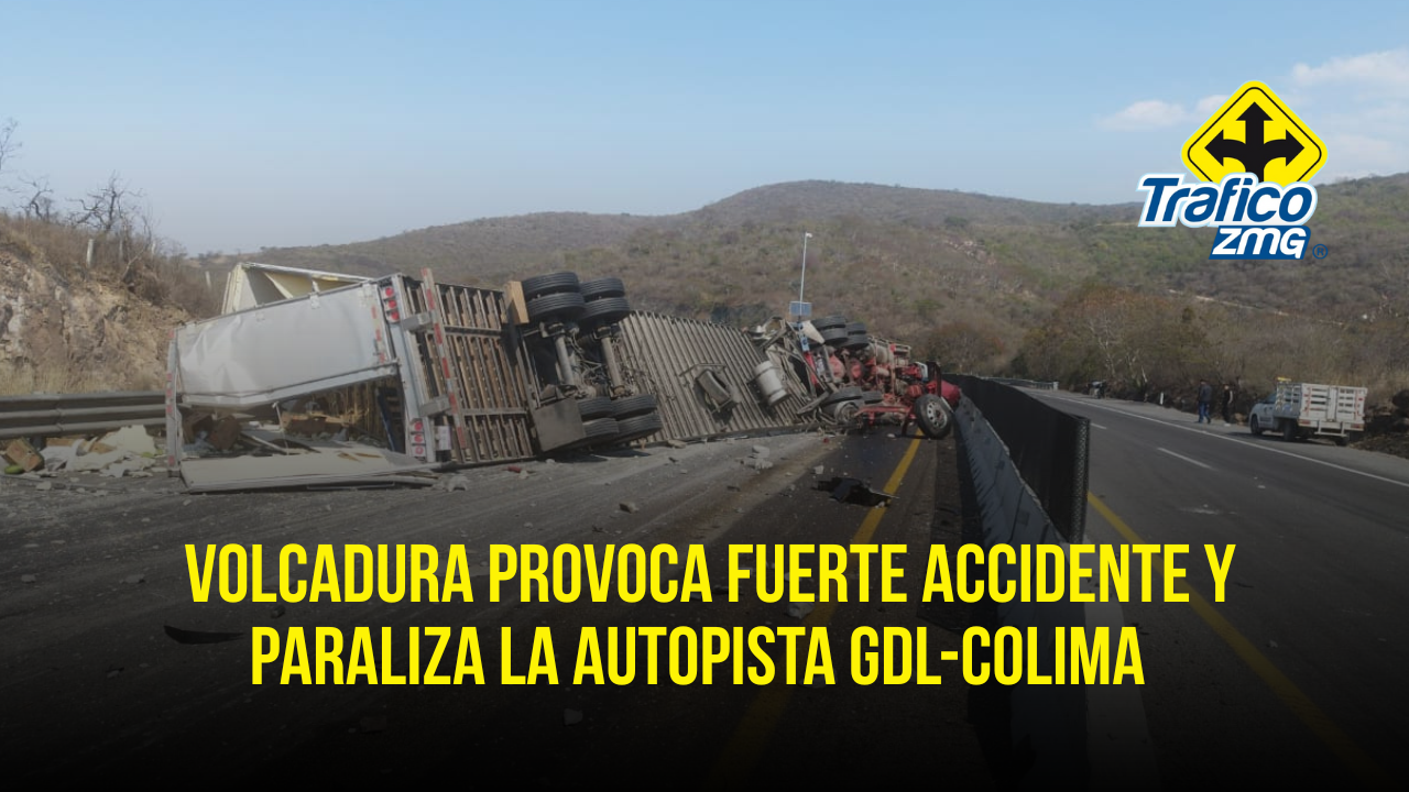 #Atención ‼️ Se registró un accidente sobre la autopista Guadalajara-Colima, a la altura de la cuesta de Sayula ⚠️ Los primeros reportes señalan que se trató del choque y la volcadura de un tráiler