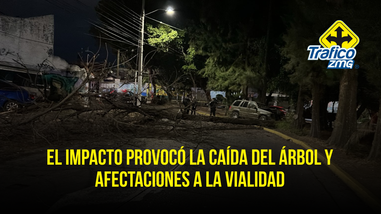 El accidente ocurrió cuando el conductor de una camioneta Jeep Grand Cherokee, color gris, perdió el control de la unidad y se estrelló contra el árbol, el cual cayó tras el fuerte impacto y quedó obstruyendo la vialidad.