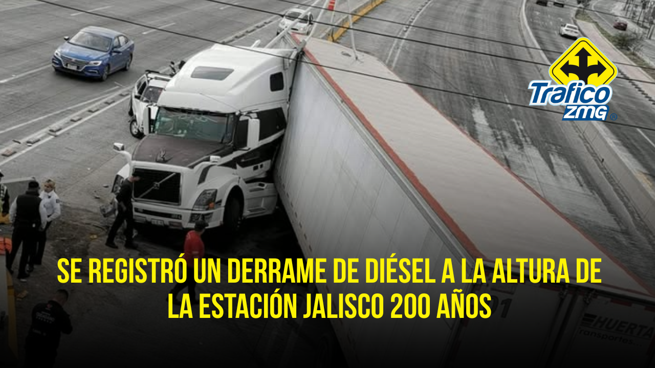 Un tráiler que circulaba sobre Periférico se impactó contra el muro de contención, lo que provocó un derrame de diésel a la altura de la estación Jalisco 200 Años, en el municipio de San Pedro Tlaquepaque.