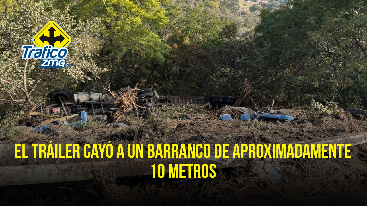 Un tráiler que transportaba aproximadamente 20 toneladas de comida para gallinas cayó a un barranco de alrededor de 10 metros de profundidad sobre la carretera a Saltillo, a la altura del kilómetro 14, cerca del Templo Nuestra Señora de Montserrat, en la zona de Las Cañadas, municipio de Zapopan.